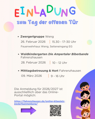 • Mittagsbetreuung & Hort Fahrenzhausen: 9. März 2026, 9 – 16 Uhr durchgehend